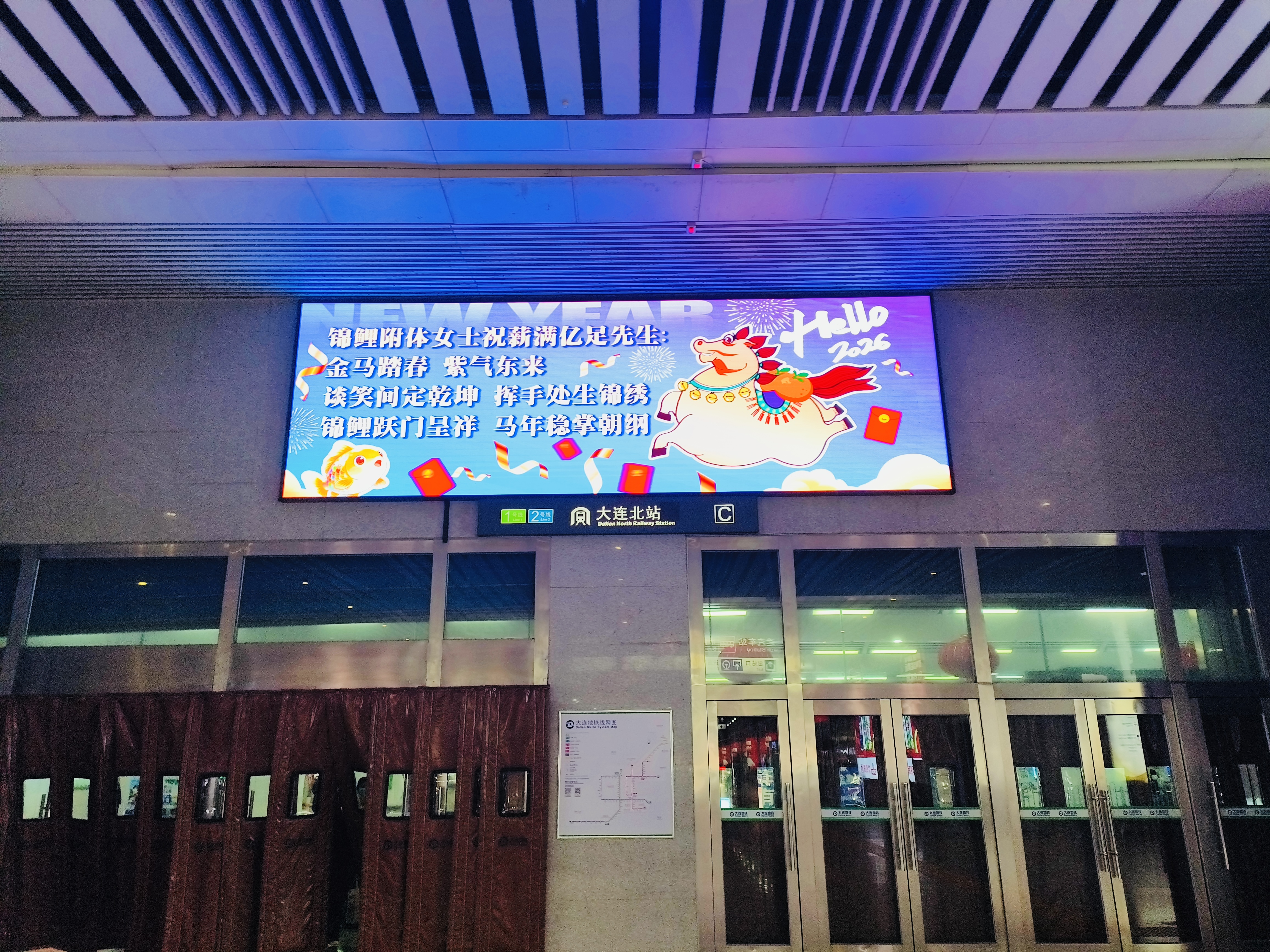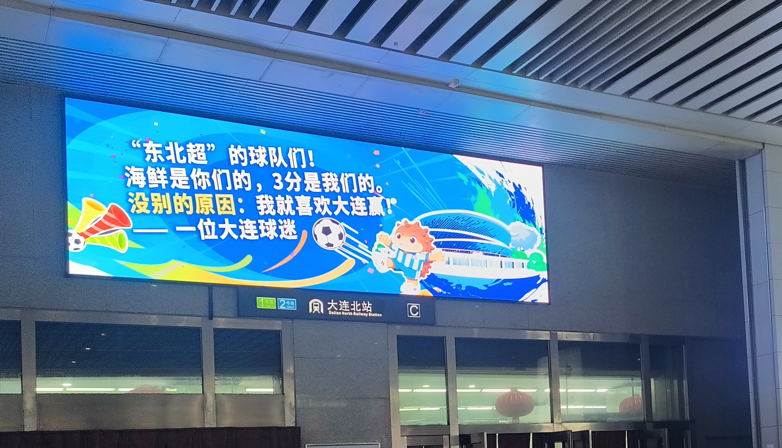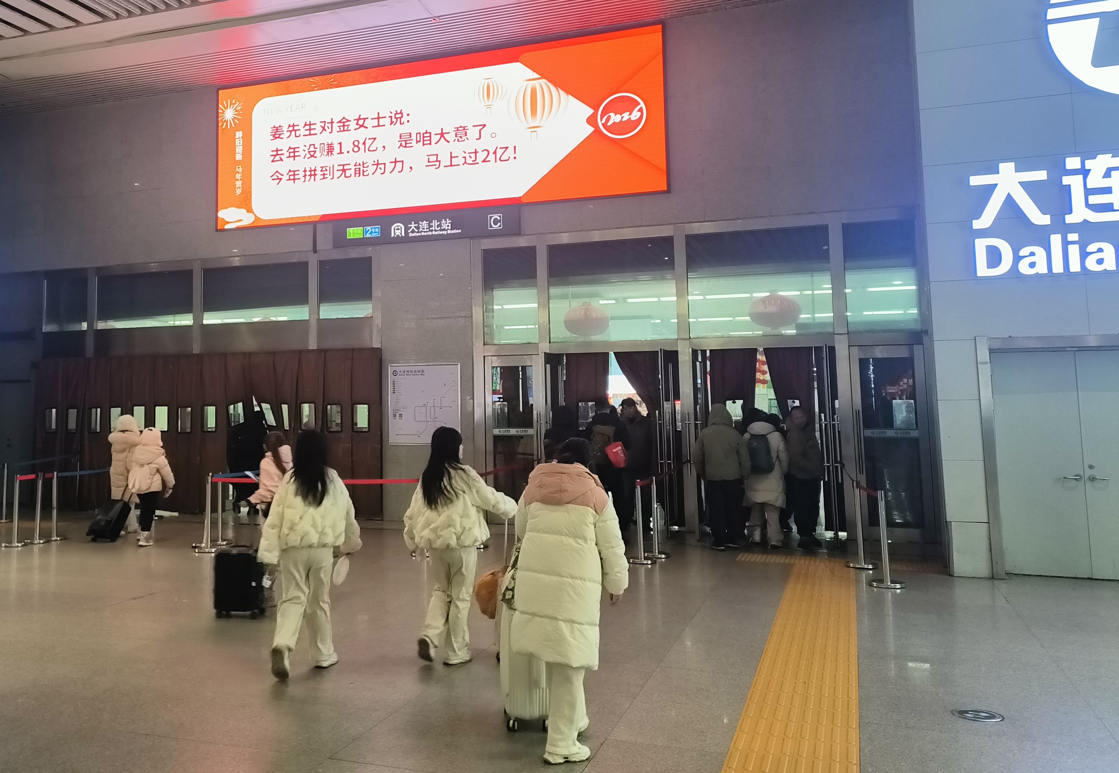 如果说地铁闸机是“强制观看”,那位于大连北站的LED大屏就是主动围观!