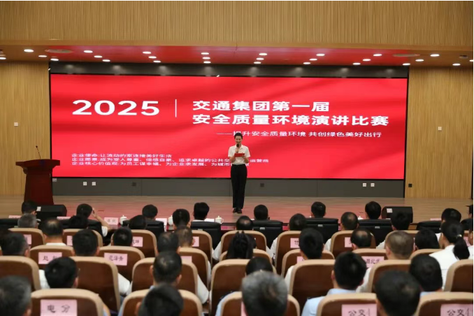 交通集团于9月25日成功举办了以“提升安全质量环境 共创绿色美好出行”为主题的第一届安全质量环境演讲比赛。交通集团领导班子成员及高管、200余名职工代表共同参加了本次活动。